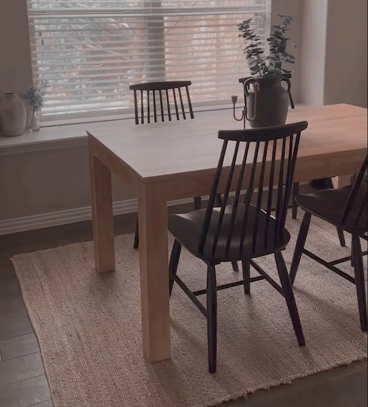 A solid wood table offers lasting durability, designed to withstand the demands of everyday life, from family meals to festive celebrations.