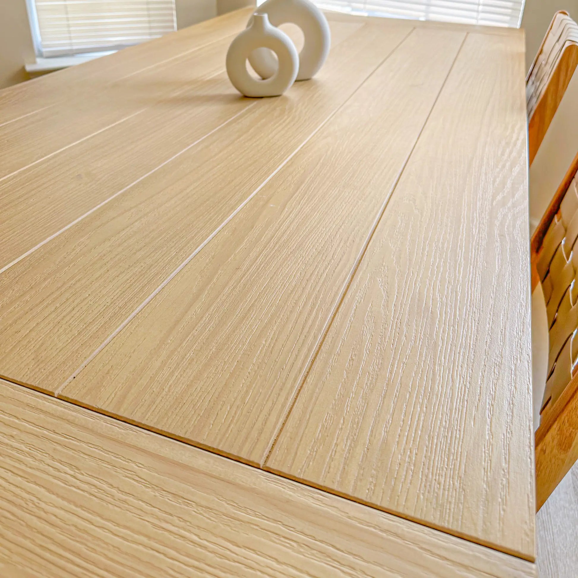 - Oak texture is pressed or "embossed" onto the pine wood, strengthening the wood through compression