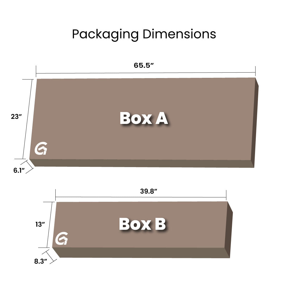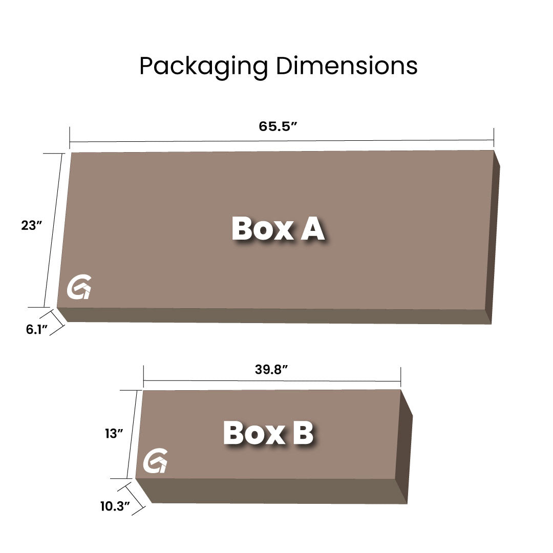 - Box A dimensions: 65.5" W x 6.1" H x 23" D - 72.6 lbs.