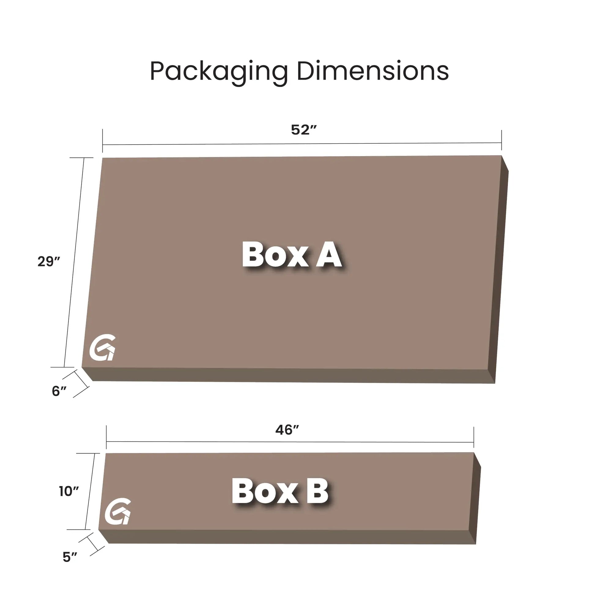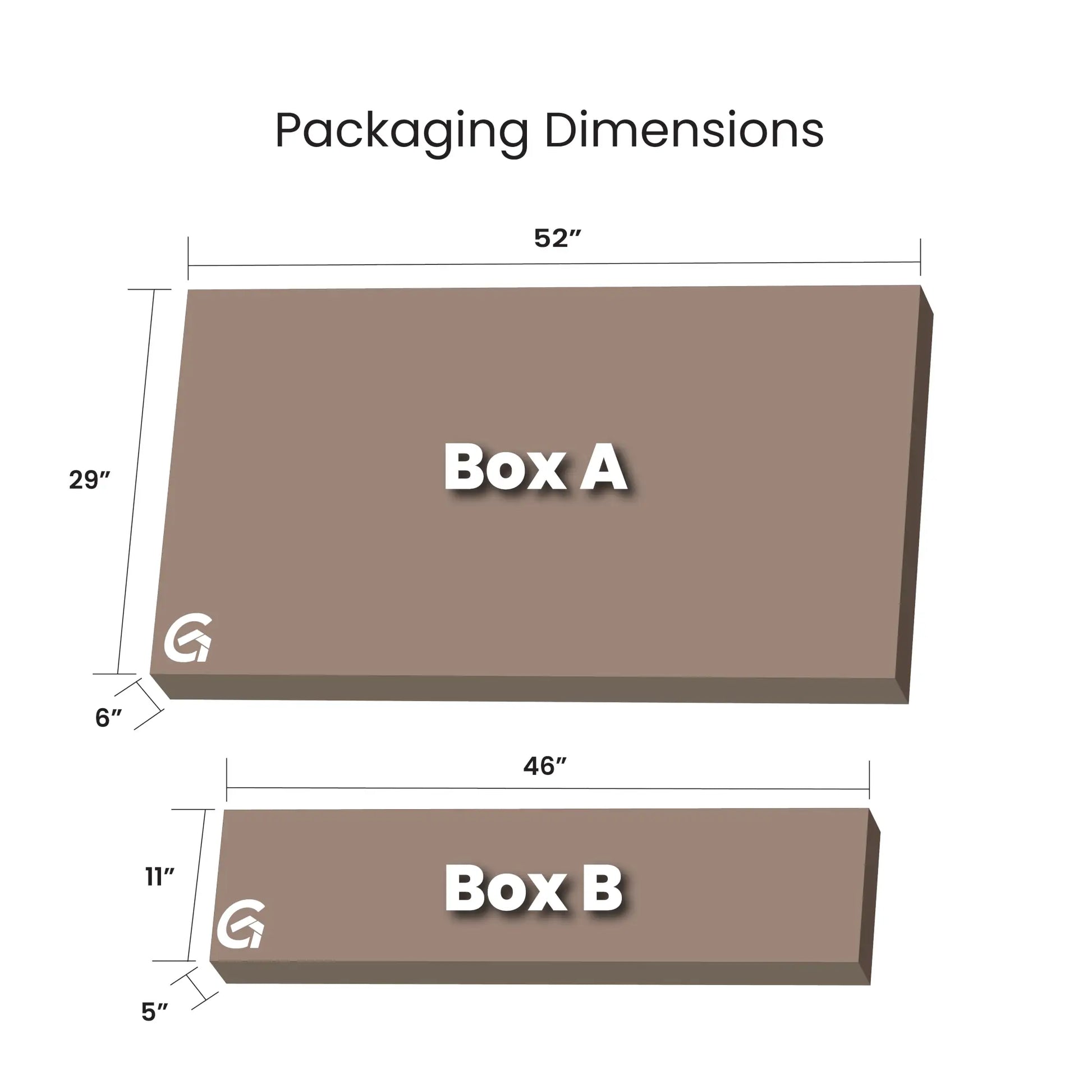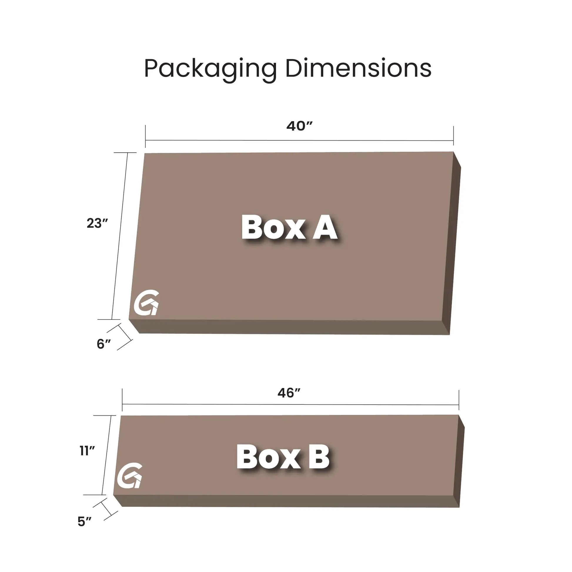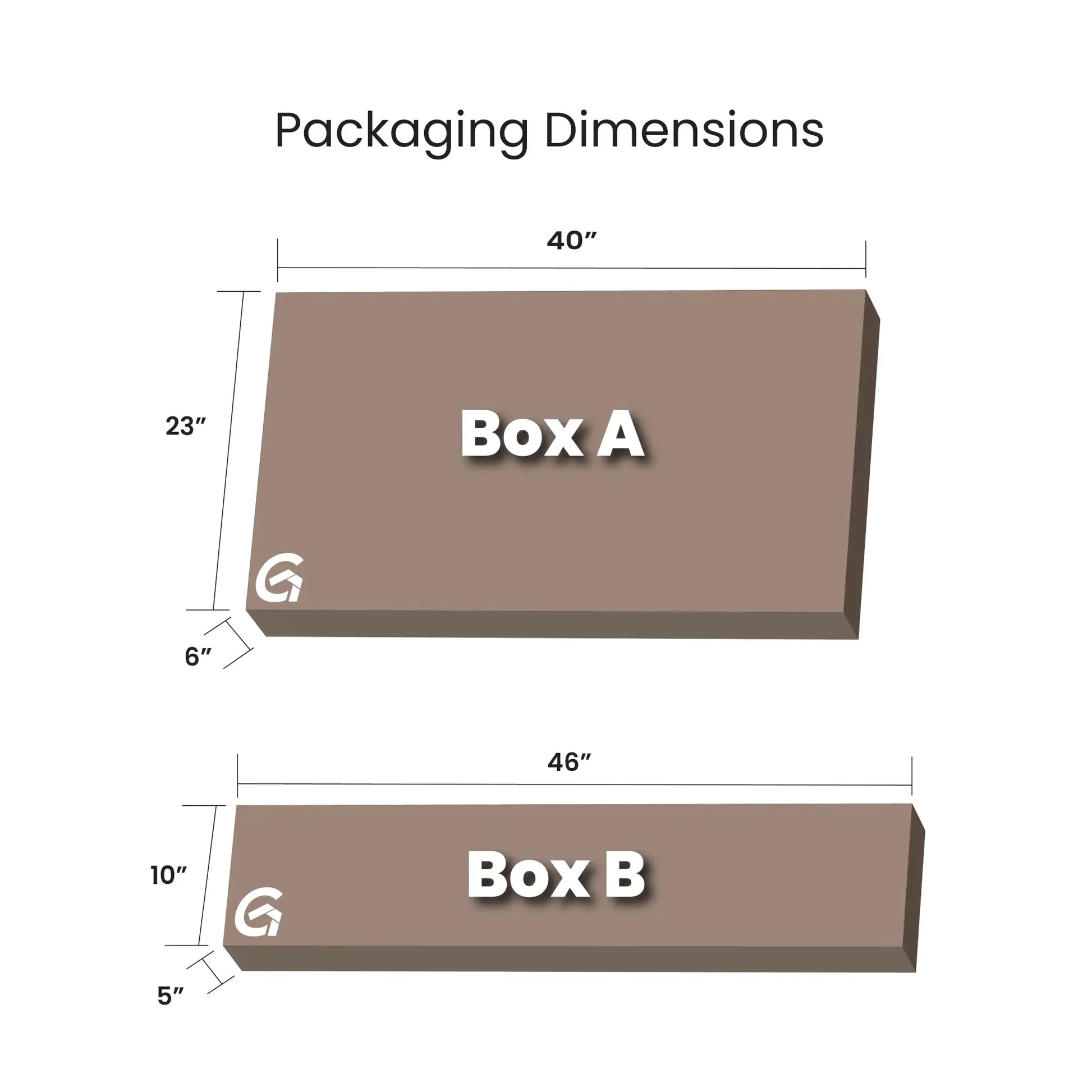 - Box B dimensions: 5.1" W x 10" H x 46.1" D - 13.2 lbs.