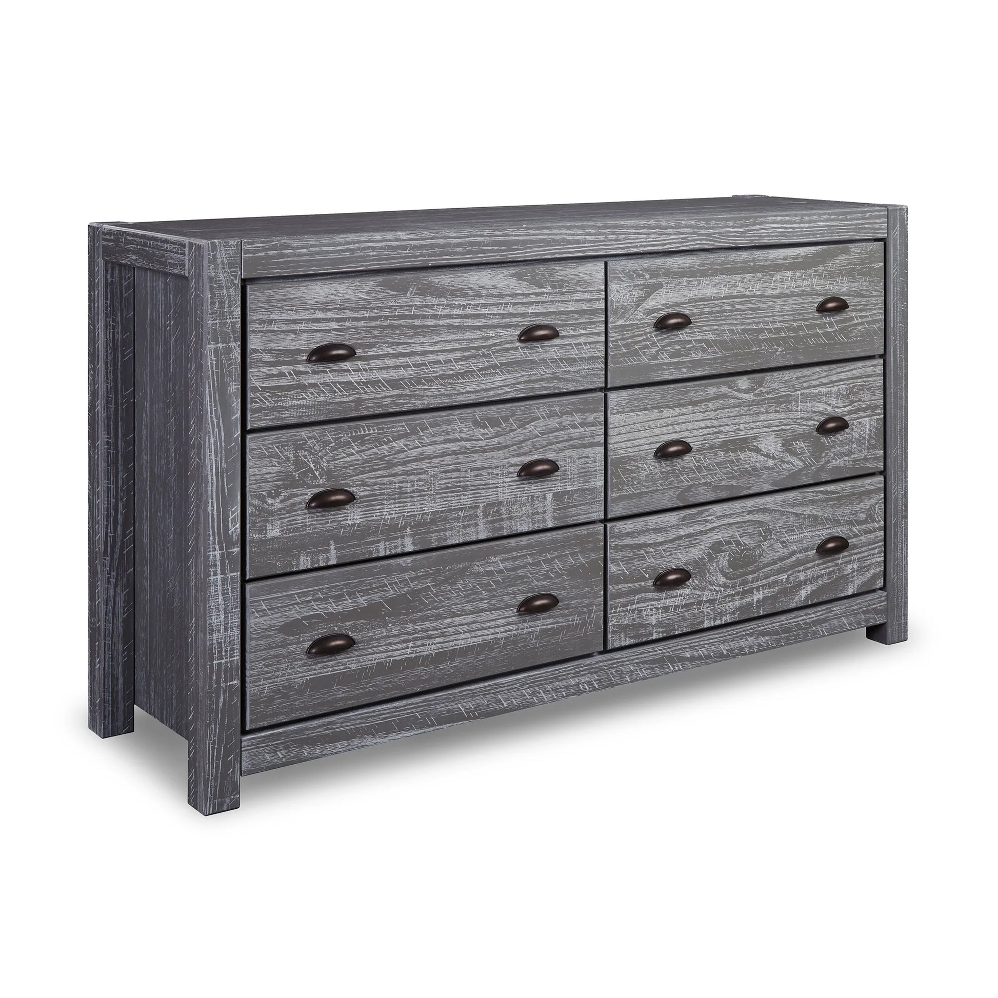 Give your bedroom a rustic look with the warmth of this 100% solid wood dresser. This design features six, spacious 5” deep drawers with the robust and sturdy construction characteristic of solid wood. The finish is designed to accentuate the unique grain, knots, and natural textures in the wood panels; and each piece is sanded and distressed by hand leading to variations in the color and texture that make every unit unique. This distressed finish is very durable and easy to touch-up. This product has minimal impact on the environment as all wood comes from renewable forests and its long life span reduces excess consumption.