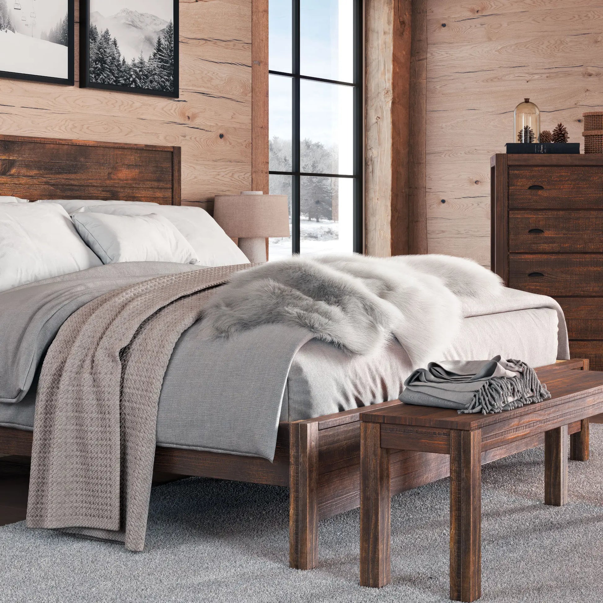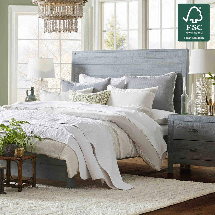 Give your bedroom a rustic chic look with the warmth of this solid wood bed. This flexible design can fit beautifully in coastal cottage, mordern farmhouse and even boho room designs. Made of 100% solid pine wood, this bed features a sturdy frame construction that can last for years. The finish is designed to accentuate the unique grain, knots, and natural textures in the wood panels; and each piece is sanded and distressed by hand leading to variations in the color and texture that make every unit unique. This distressed finish is very durable and easy to touch-up.