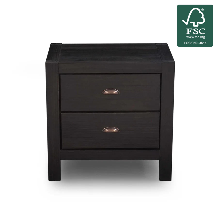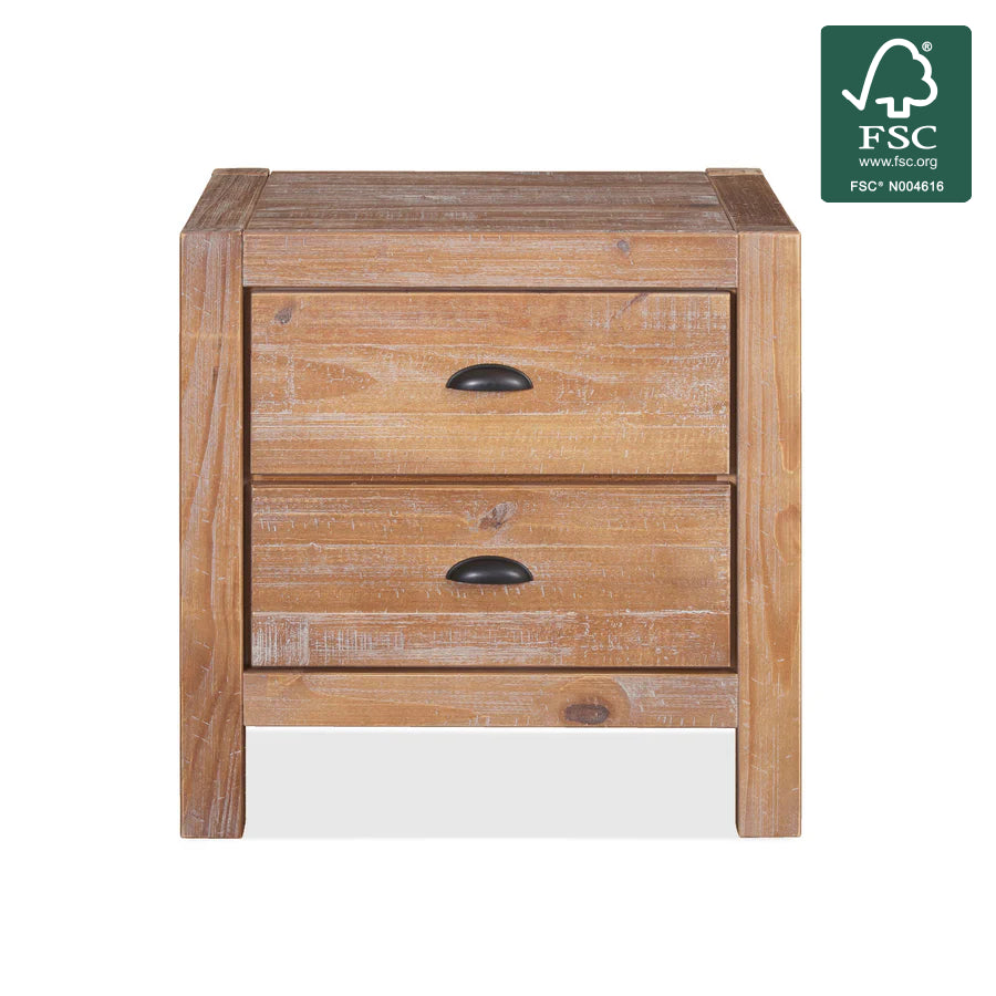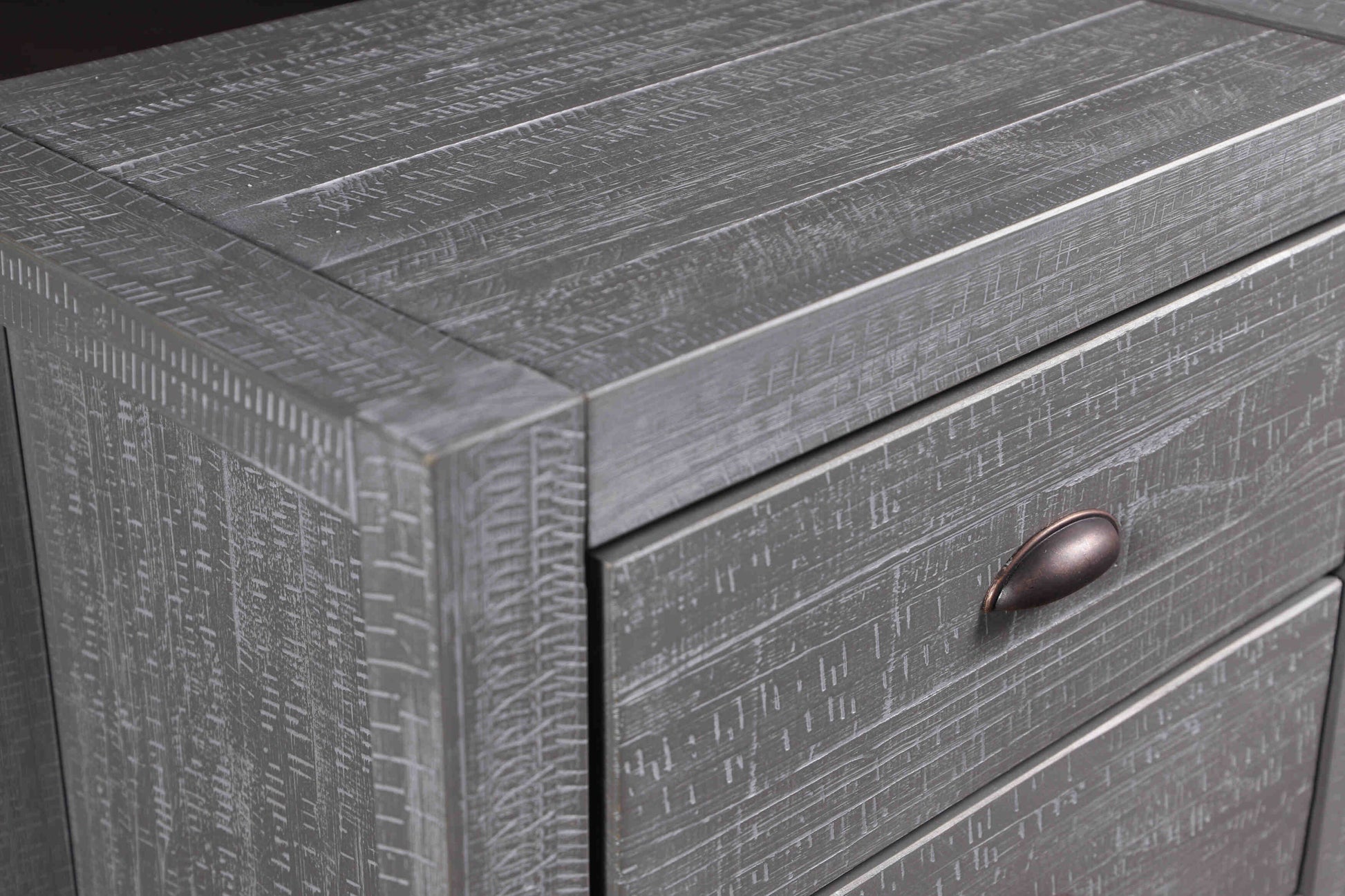 Give your bedroom a rustic look with the warmth of this solid wood nightstand. Made of 100% solid pine wood, this nightstand features a sturdy construction that can last for years. The finish is designed to accentuate the unique grain, knots, and natural textures in the wood panels; and each piece is sanded and distressed by hand leading to variations in the color and texture that make every unit unique. This distressed finish is very durable and easy to touch-up.