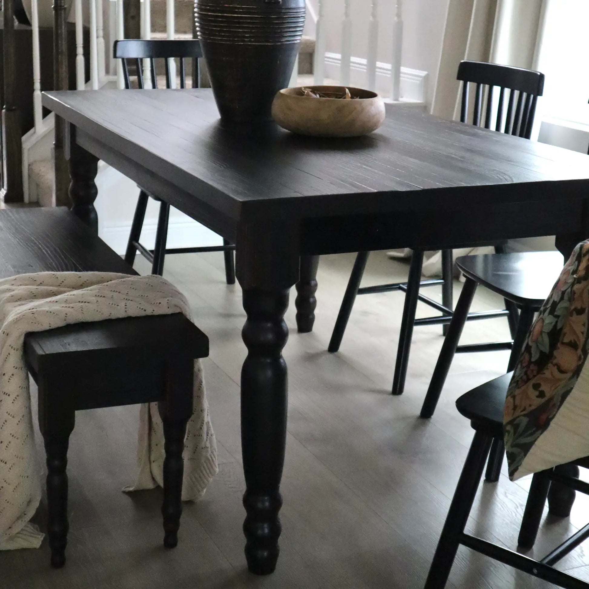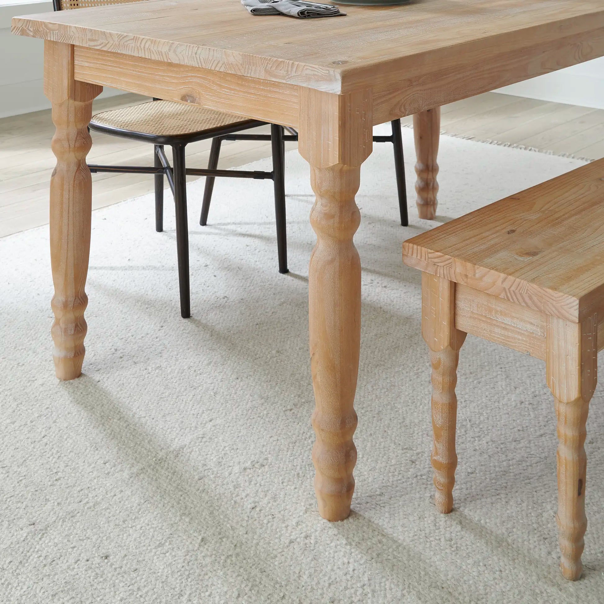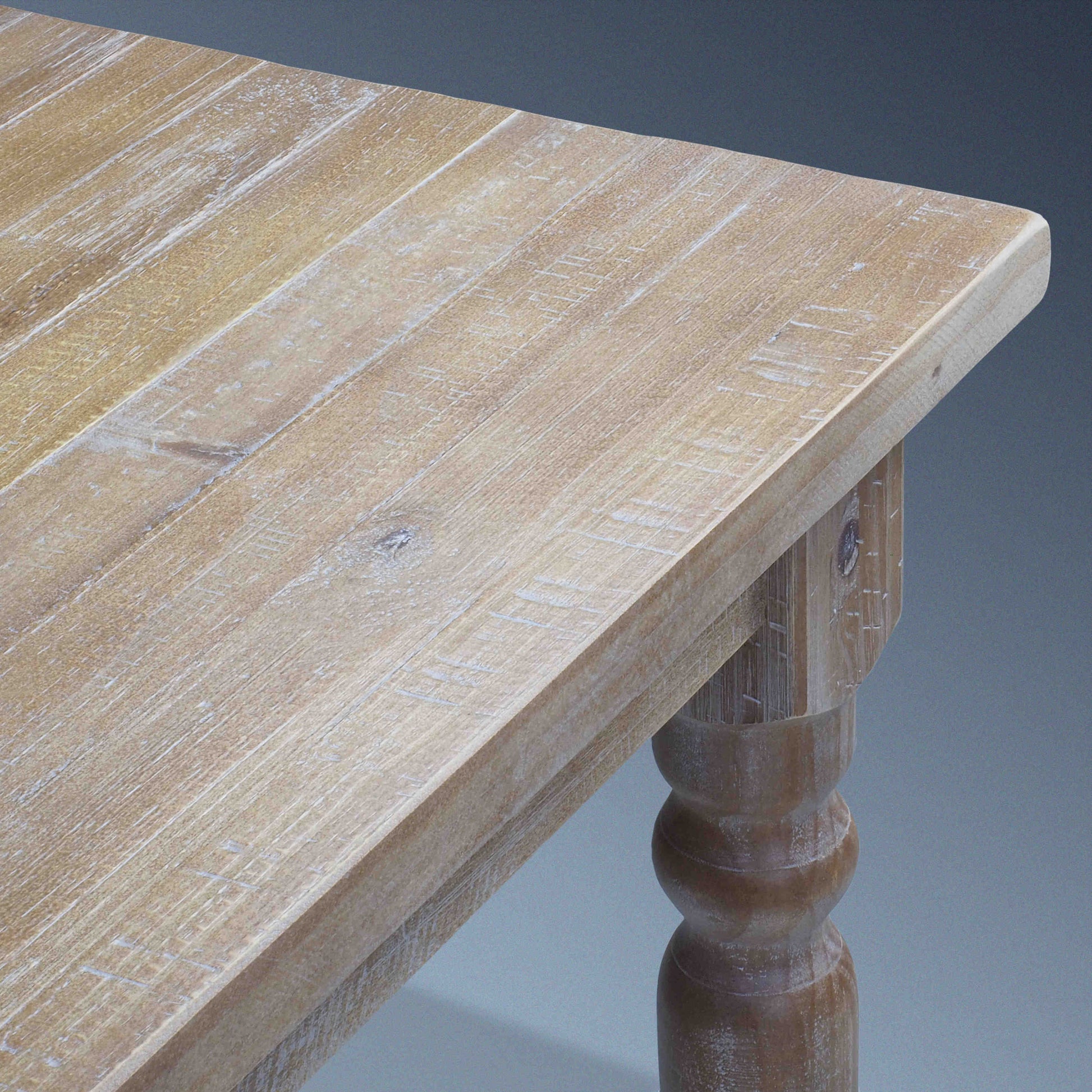 Give your dining room a rustic modern farmhouse look with the warmth of this solid wood dining table. This versatile and neutral design goes well with several chair types and features robust and sturdy wood construction made of 100% solid pine wood from Southern Brazil. The finish is designed to accentuate the unique grain, knots, and natural textures in the wood panels; and each piece is sanded and distressed by hand leading to variations in the color and texture that make every unit unique. This distressed finish is very durable and easy to touch-up.