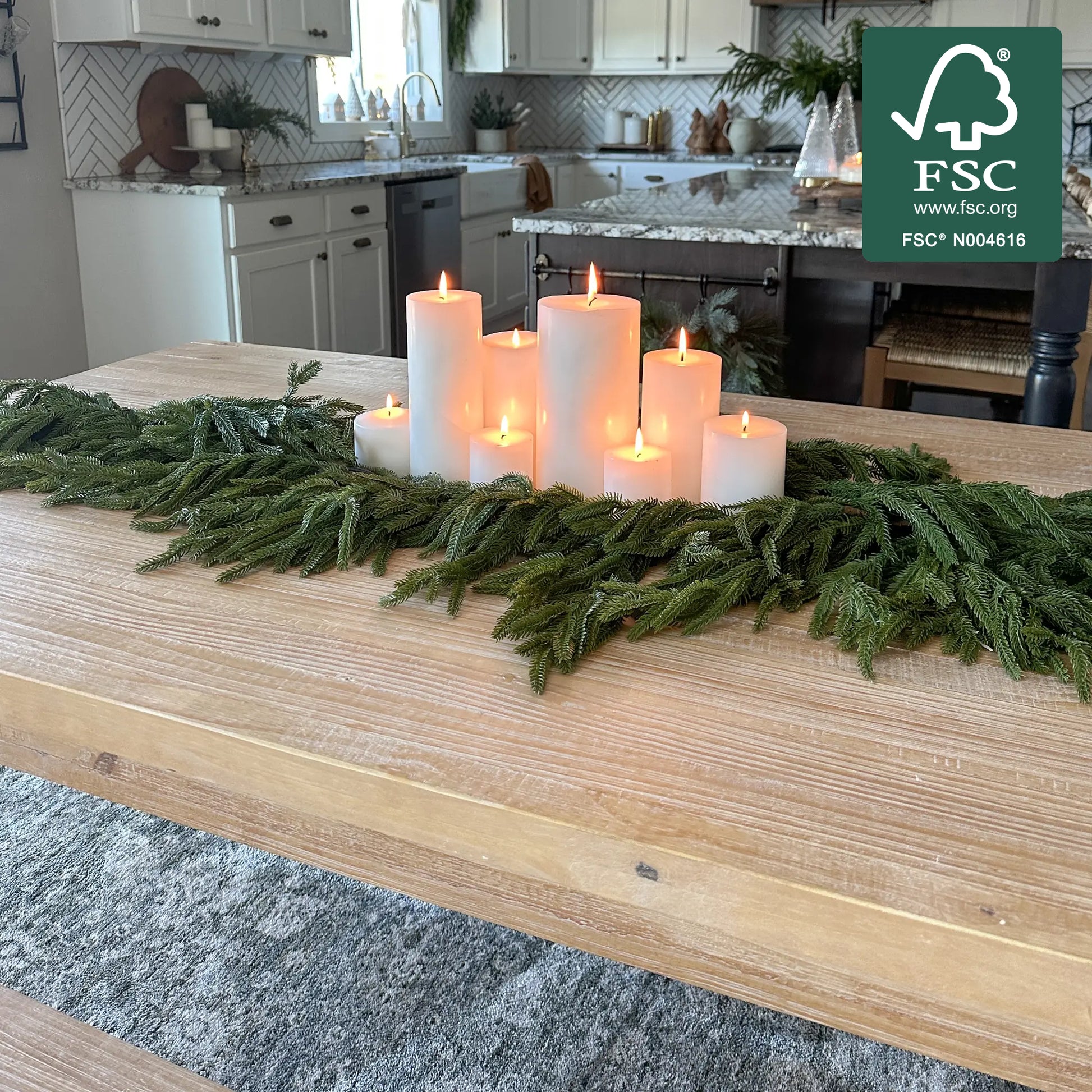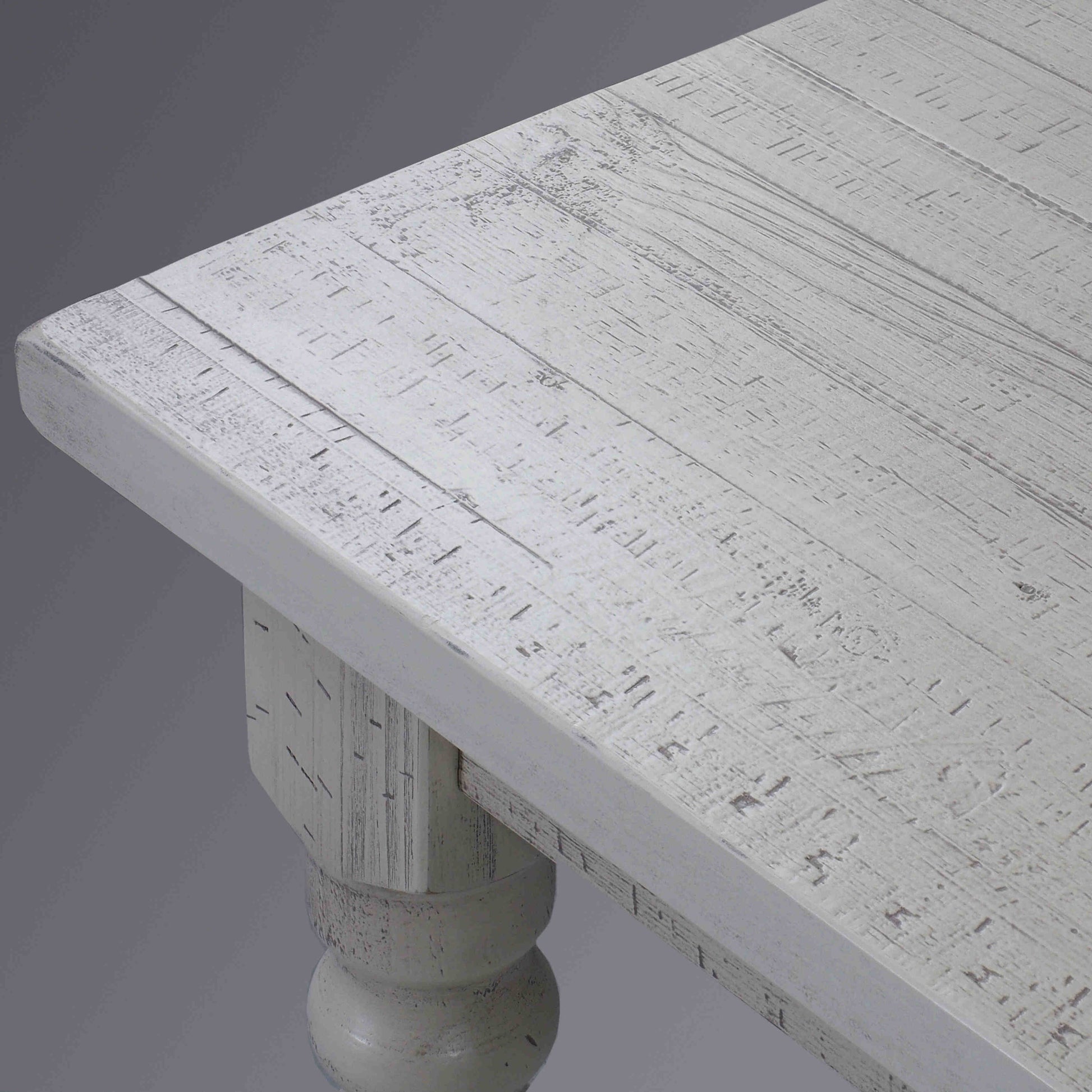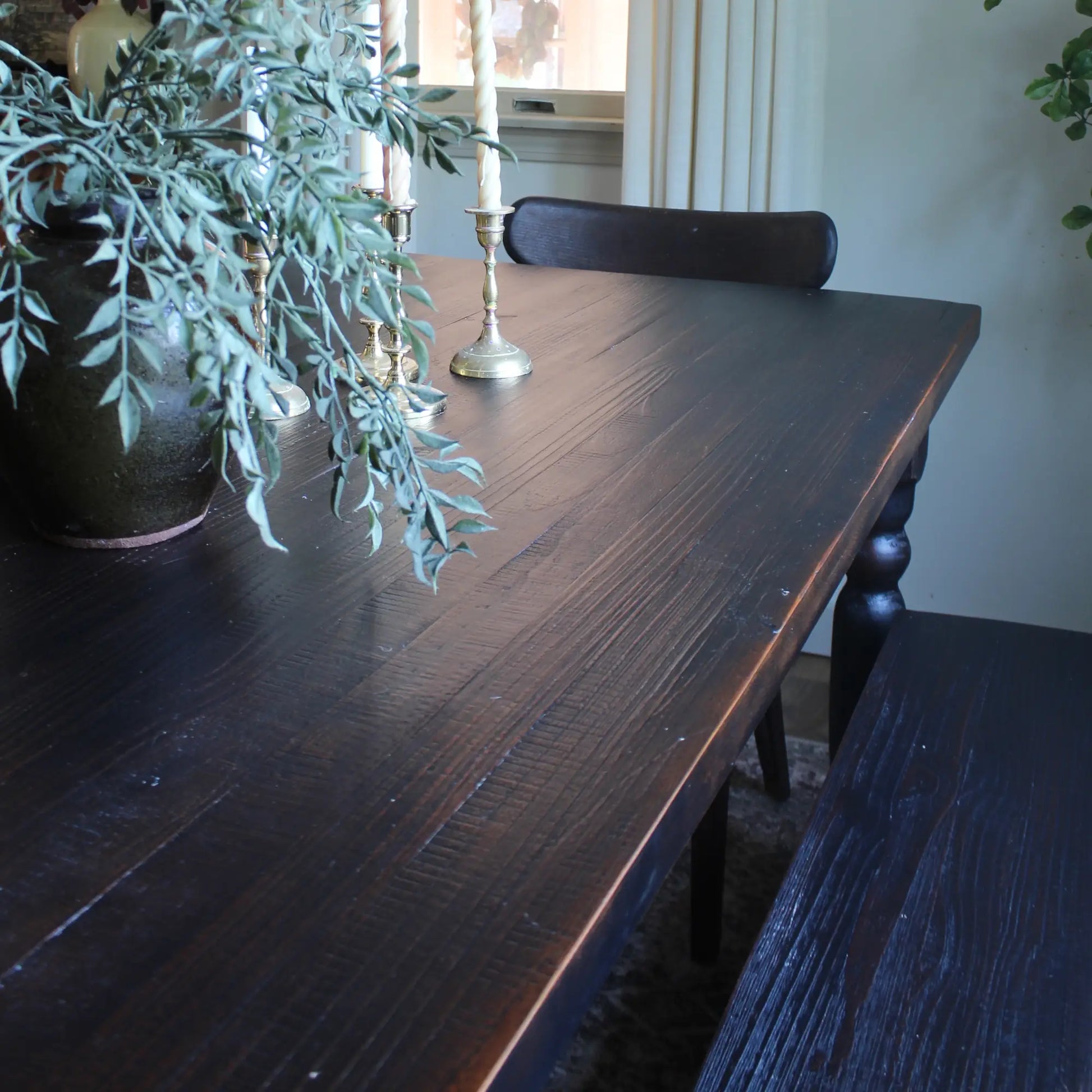 Give your dining room a rustic modern farmhouse look with the warmth of this solid wood dining table. This versatile and neutral design goes well with several chair types and features robust and sturdy wood construction made of 100% solid pine wood from Southern Brazil. The finish is designed to accentuate the unique grain, knots, and natural textures in the wood panels; and each piece is sanded and distressed by hand leading to variations in the color and texture that make every unit unique. This distressed finish is very durable and easy to touch-up.