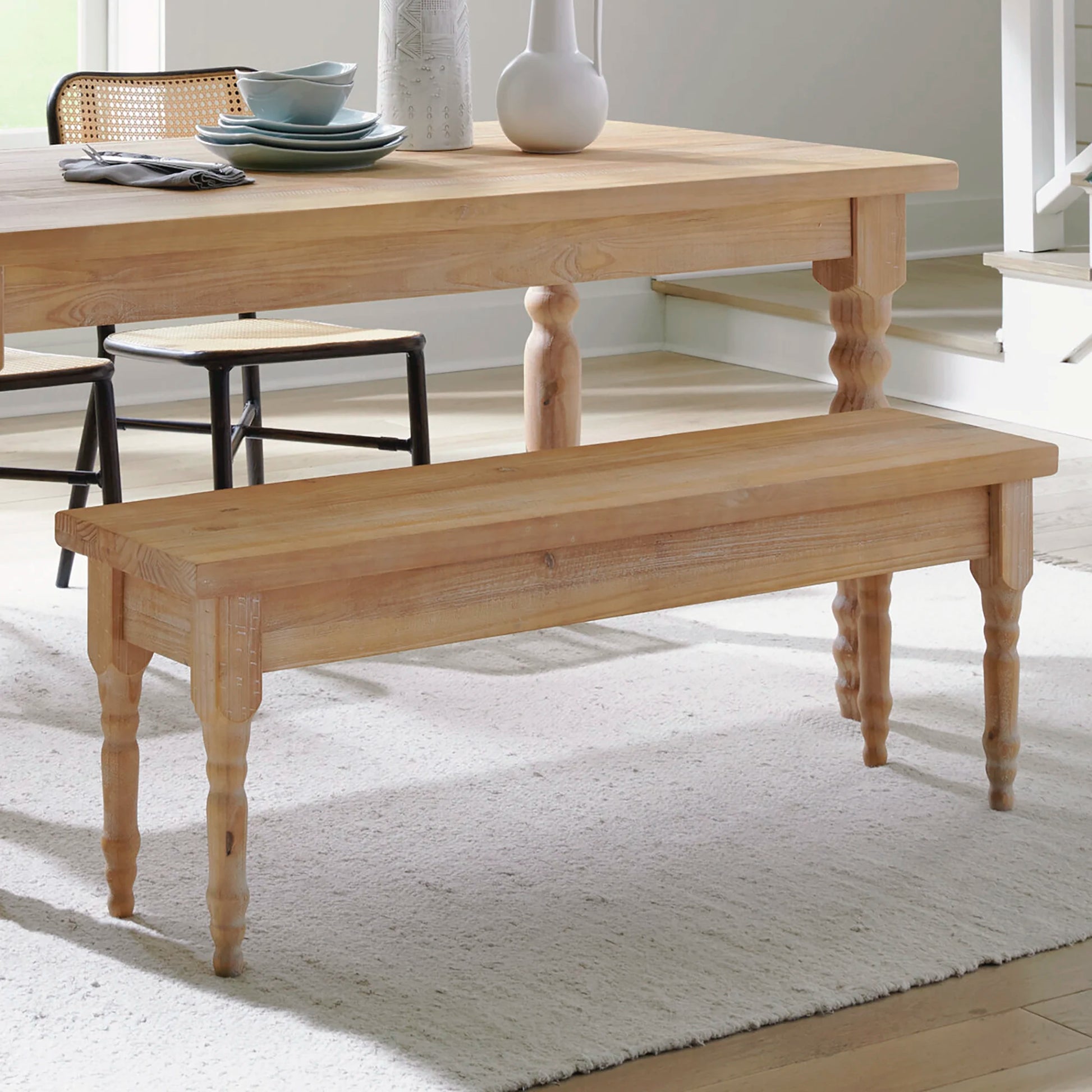 Give your room a rustic modern farmhouse look with the warmth of this solid wood bench. This versatile and neutral design matches the Valerie Original Dining Table. It features robust and sturdy wood construction made of 100% solid pine wood from Southern Brazil. The finish is designed to accentuate the unique grain, knots, and natural textures in the wood panels; and each piece is sanded and distressed by hand leading to variations in the color and texture that make every unit unique. This distressed finish is very durable and easy to touch-up.